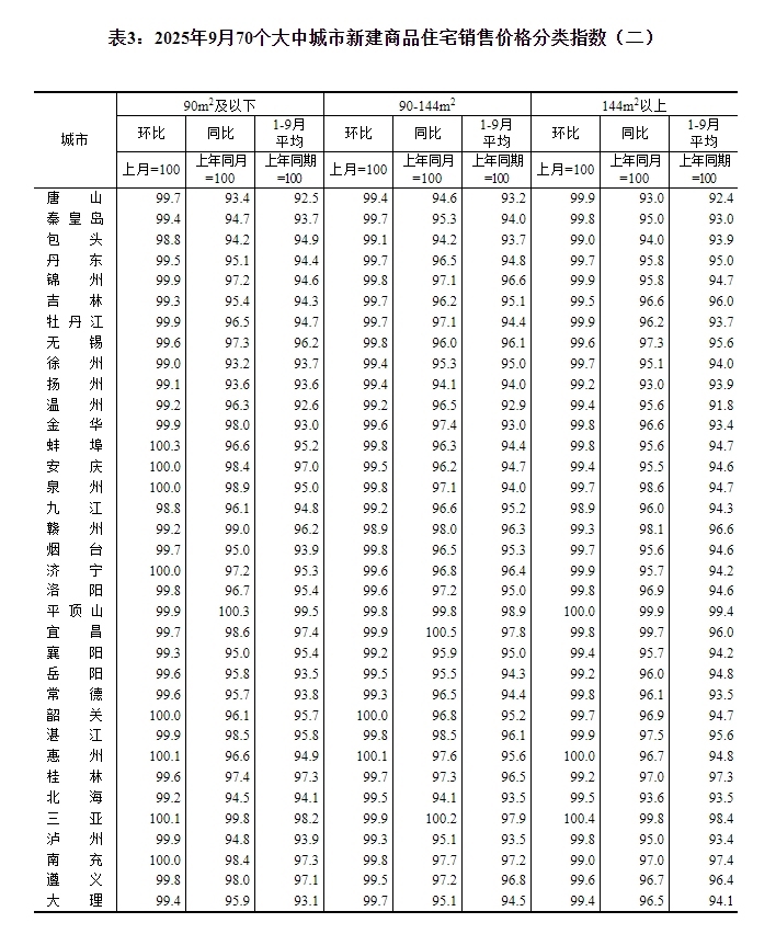 国家统计局城市司首席统计师王中华解读2025年9月份商品住宅销售价格变动情况统计数据。