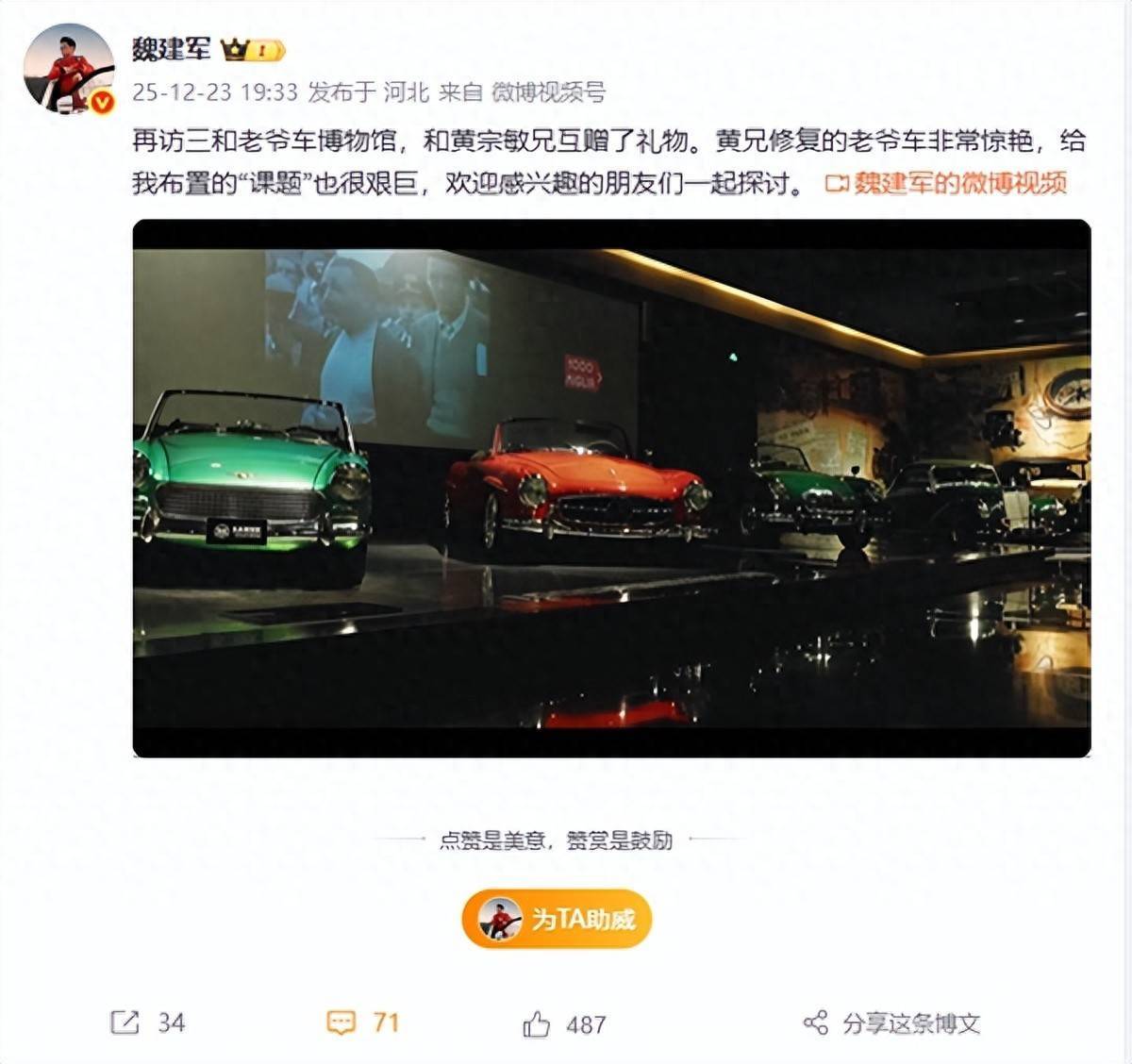 纪录片里的一幕耐人寻味,面对博物馆创始人黄宗敏修复的经典车型,魏建军直言 "课题艰巨"。两位行业大佬互赠礼物后,这台诞生于上世纪 40 年代的老爷车被小心翼翼地运往长城研发中心,而黄宗敏的那句 "把老爷车的艺术延续下去",成了最直白的信号。这并非突发奇想,早在 12 月 19 日,长城线控底盘首席工程师李飞的一条微博就埋下伏笔,配图中圆润大灯、直瀑格栅的复古新车,与哈弗、坦克等现有品牌风格截然不同。